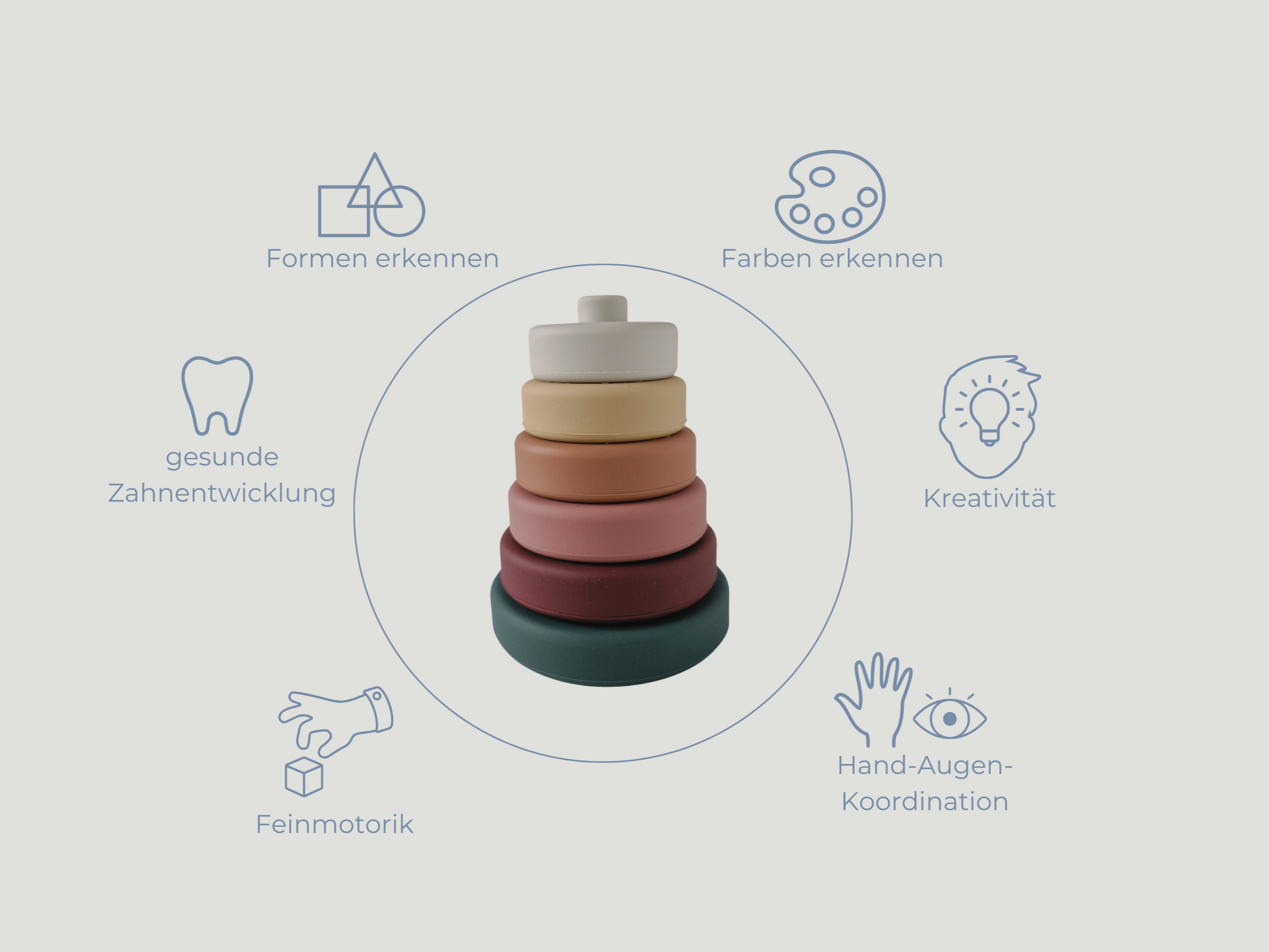 Stapelturm TJARK - ein 6-teiliges Stapelspiel aus Silikon.