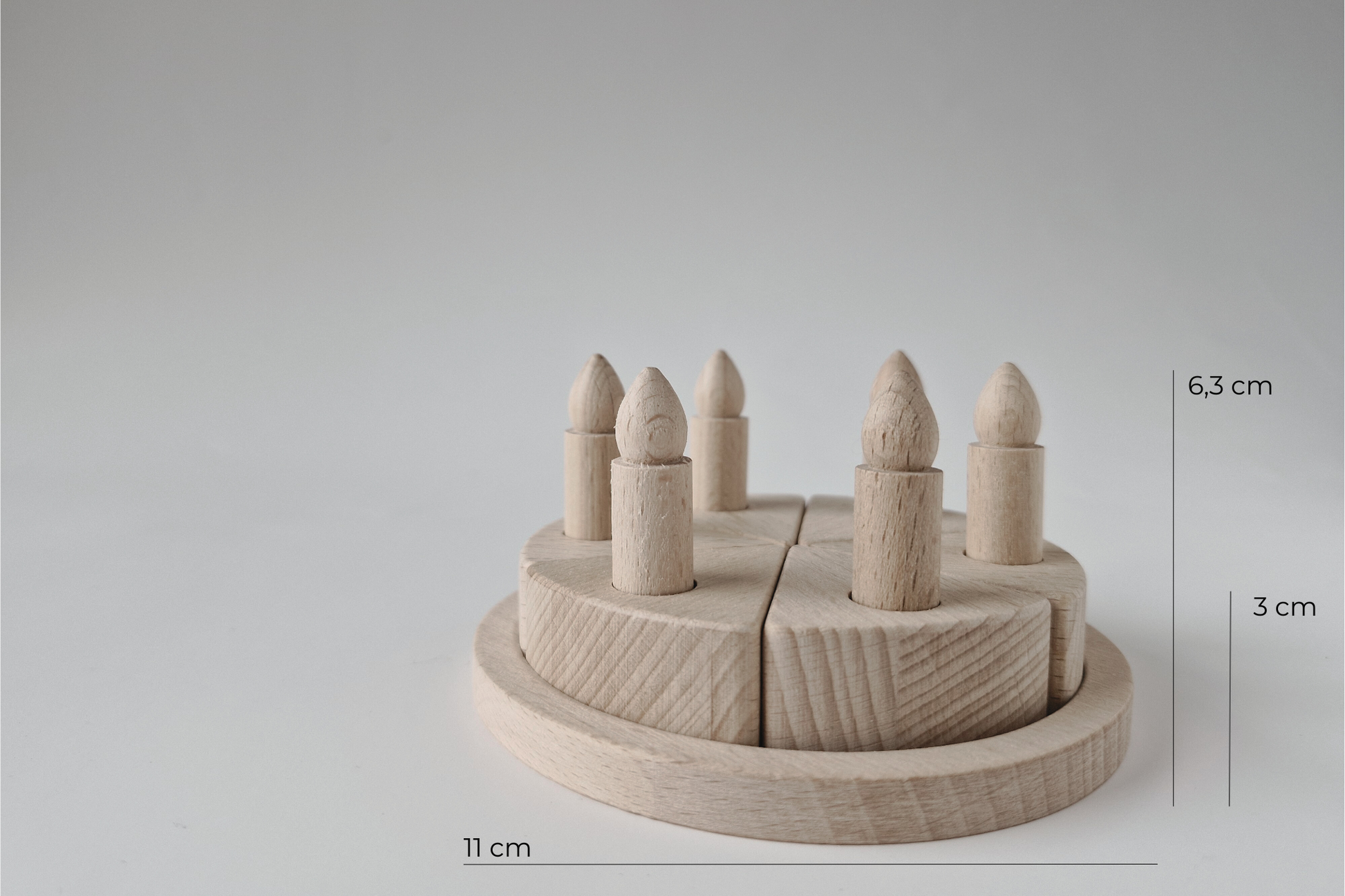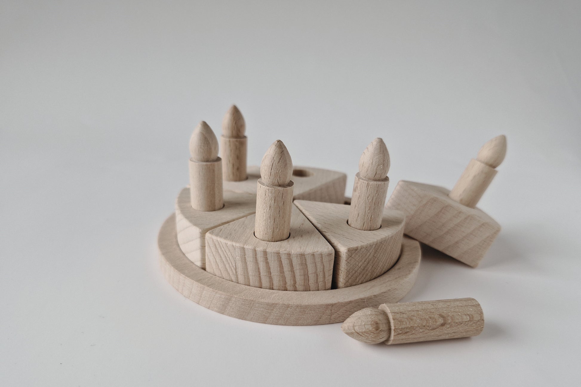 Diese liebevoll gestaltete Torte aus hochwertigem Holz besteht aus sechs einzelnen Tortenstücken, die zusammengesetzt als ganze Torte oder einzeln genutzt werden können. Jedes Stück hat eine eisteckbare Kerze. Ob für die Puppenküche, den Kaufladen oder eine fantasievolle Teeparty.