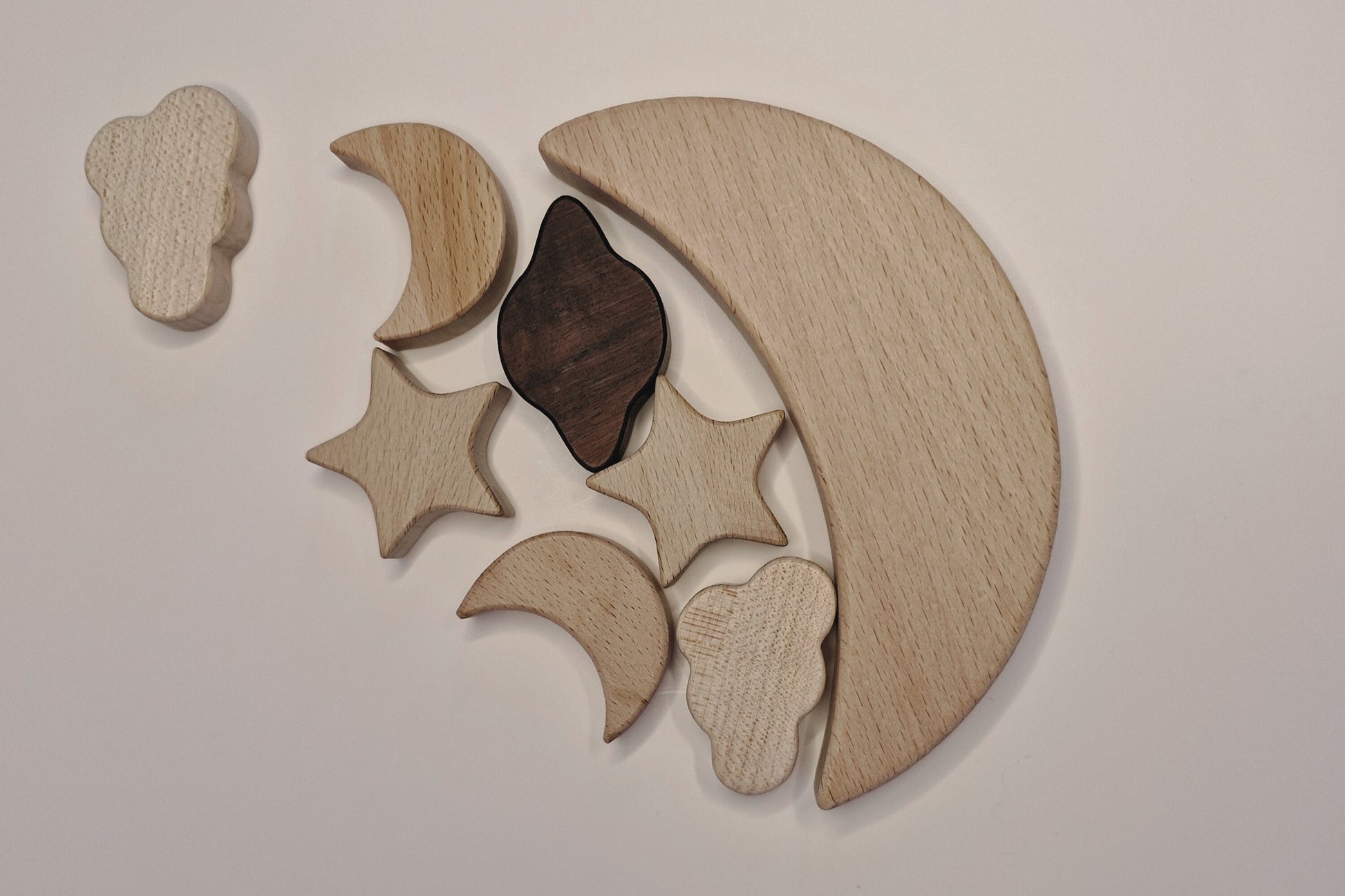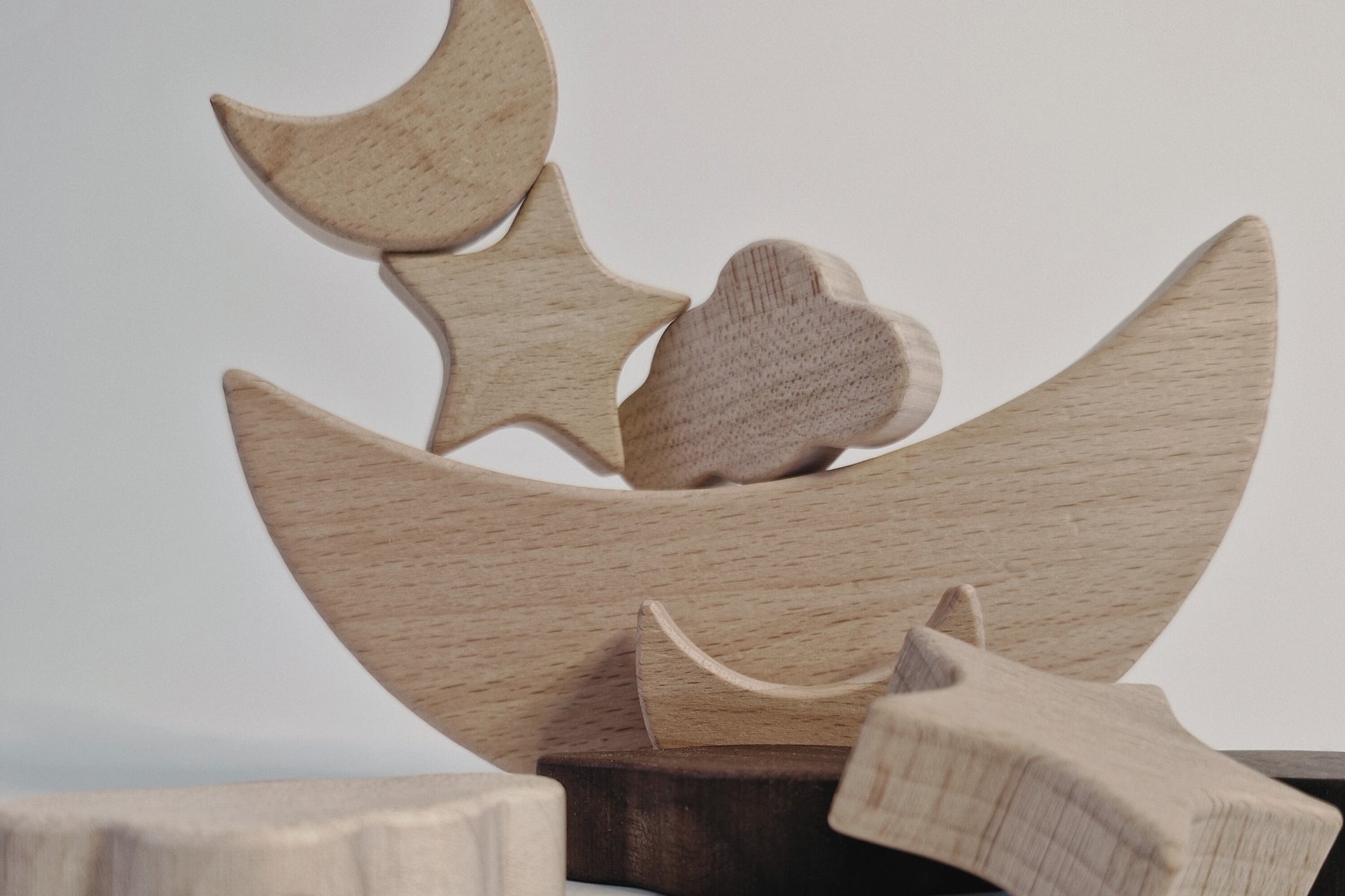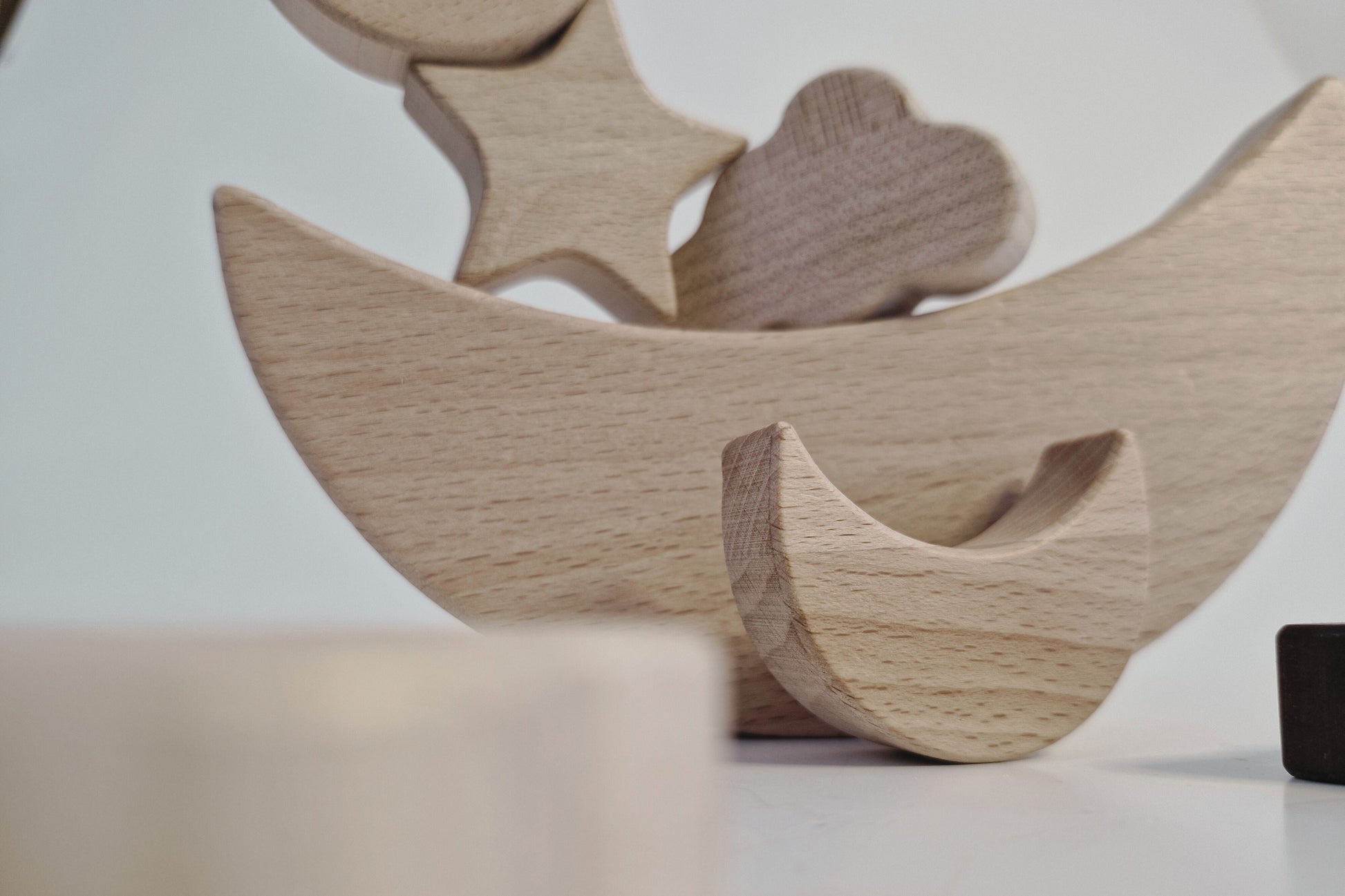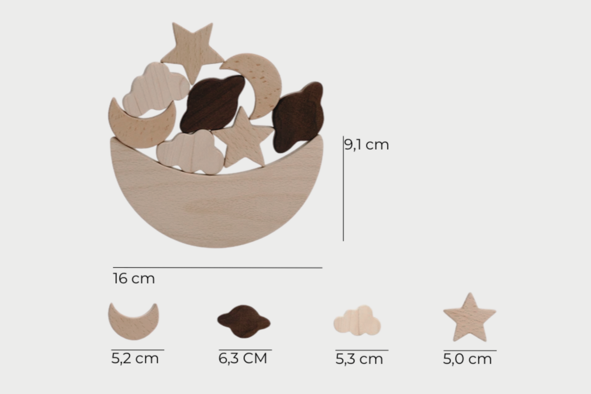 Dieses liebevoll gestaltete Balancierspiel aus 100 % Vollholz bietet abwechslungsreichen Spielspaß und fördert gleichzeitig die Feinmotorik und den Gleichgewichtssinn von Kindern. Das Set besteht aus einem großen, stabilen Mond und mehreren kleineren Sternen, Wolken und Monden, die geschickt auf dem Mond gestapelt werden müssen. Das schlichte Design richtet den Fokus auf das Wesentliche und fördert die Konzentration.
