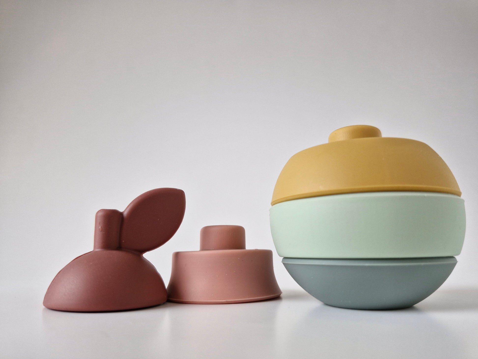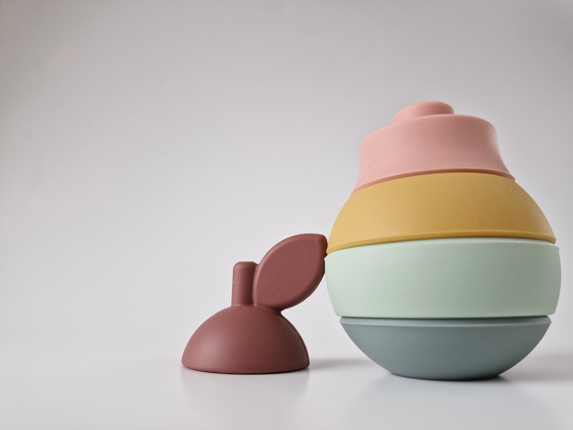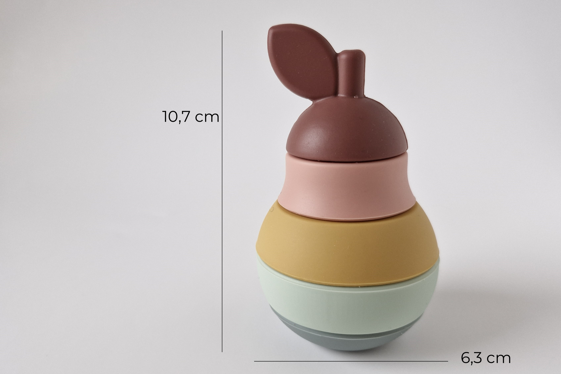 Birne BENT - ein 5-teiliges Stapelobst aus Silikon.