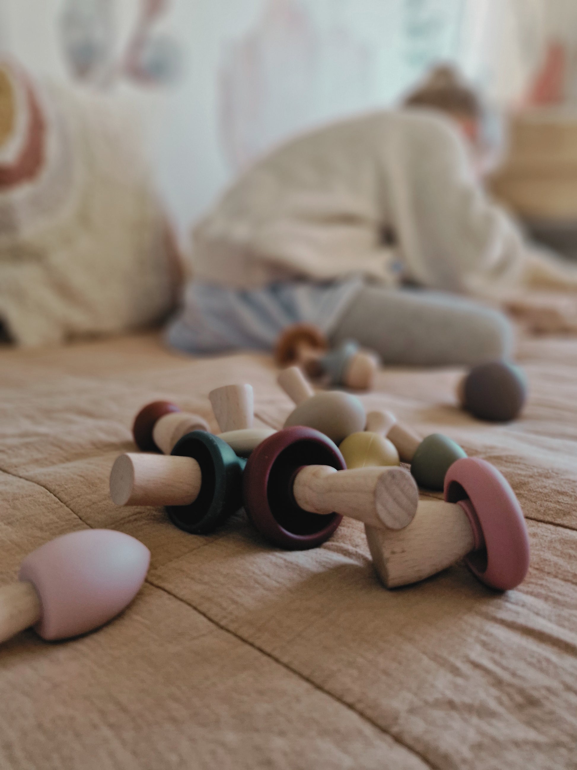 Die liebevoll gefertigten Pilze in harmonischen, gedeckten Farben fördern die Kreativität im freien Spiel durch ihre zahlreichen Einsatzmöglichkeiten als Dekoration, Teil eines fantasievollen Spiels oder als Lernspielzeug. Ein Hingucker im Kinderzimmer.