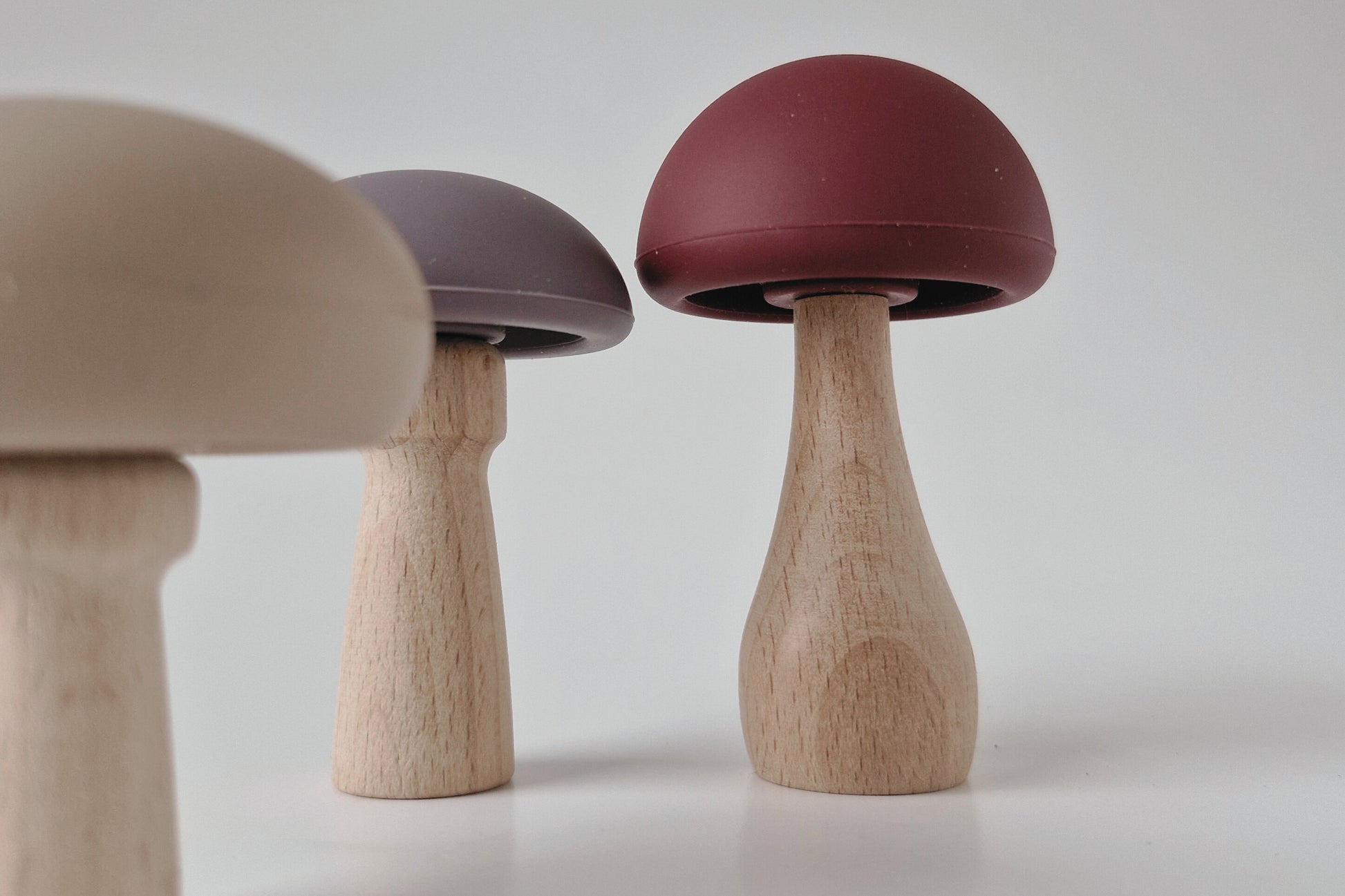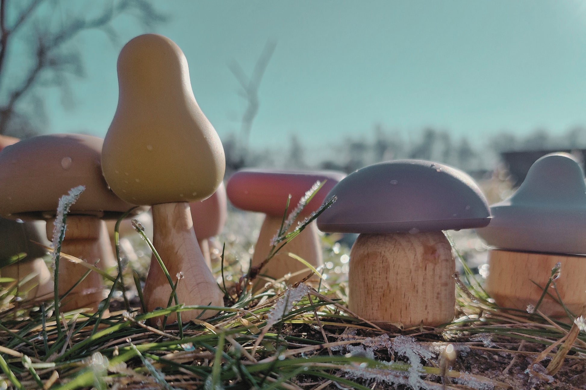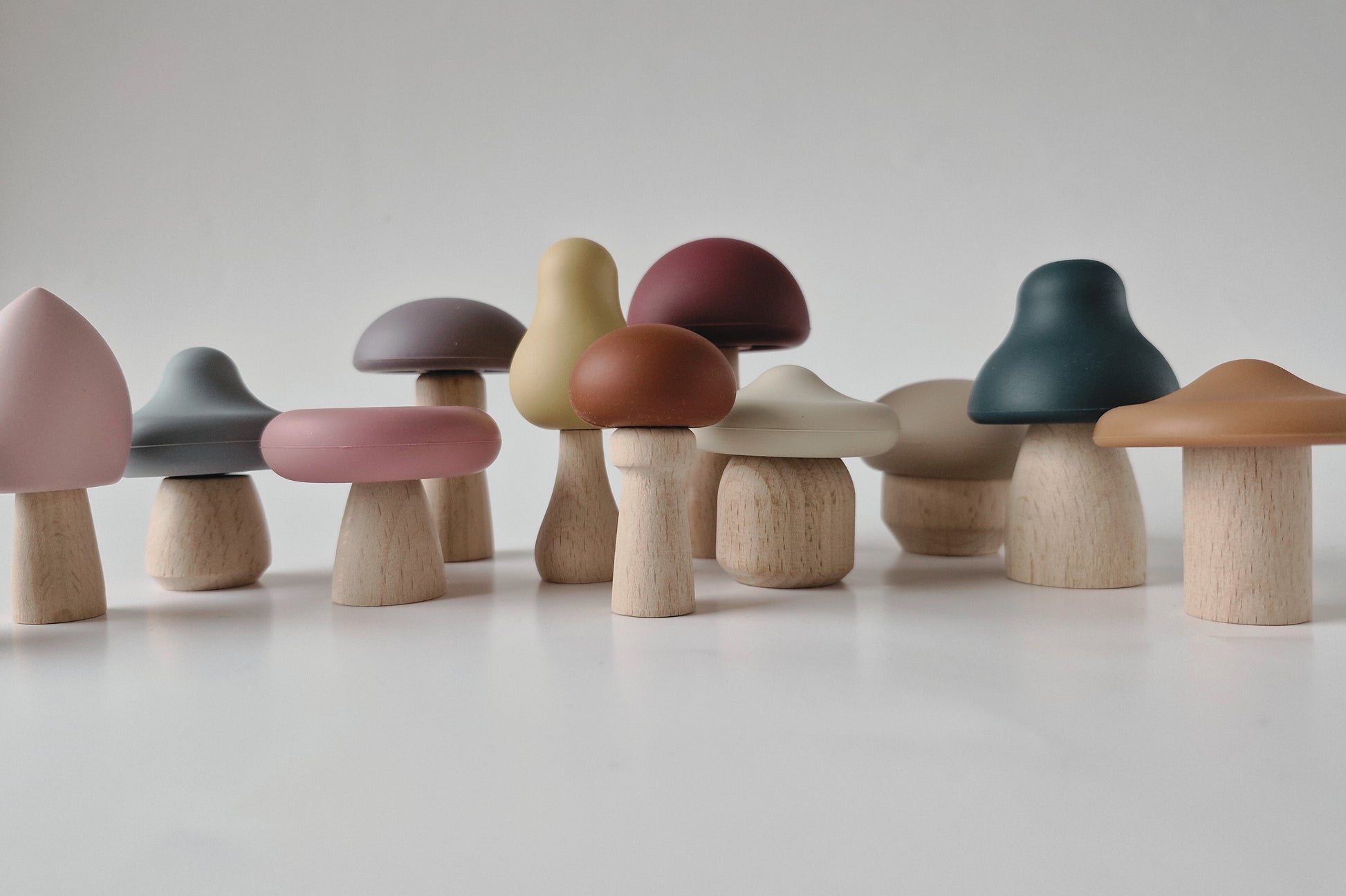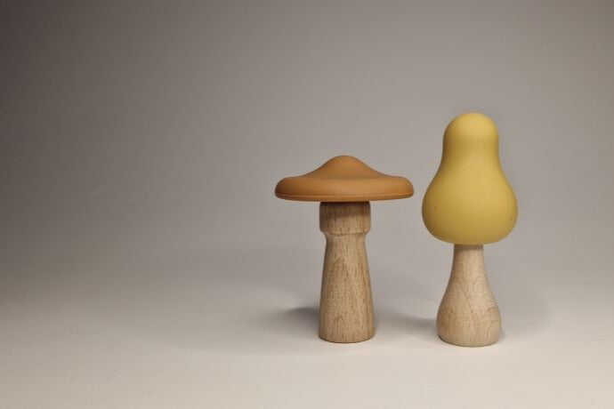Set aus 12 niedlichen Pilzen mit wechselbaren Köpfen aus Silikon. Die Köpfe können abgenommen und mit den unterschiedlichen Stielen aus hochwertig gearbeitetem Holz beliebig neu kombiniert werden. Das ermöglicht es Kindern, ihre eigenen Pilzkreationen zu gestalten und ihrer Fantasie freien Lauf zu lassen.